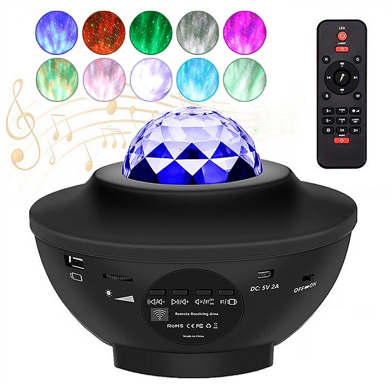 Pored toga što nudi čak 21 režim osvetljenja koji vašu sobu pretvaraju u galaksiju, ovaj model lampe poseduje i integrisani zvučnik koji omogućuje strimovanje muzike preko Bluetooth-a ili fleš memorije. Povrh svega, daljinski upravljač koji dobijate uz ovaj uređaj omogućuje vam da upravljate svim funkcijama.