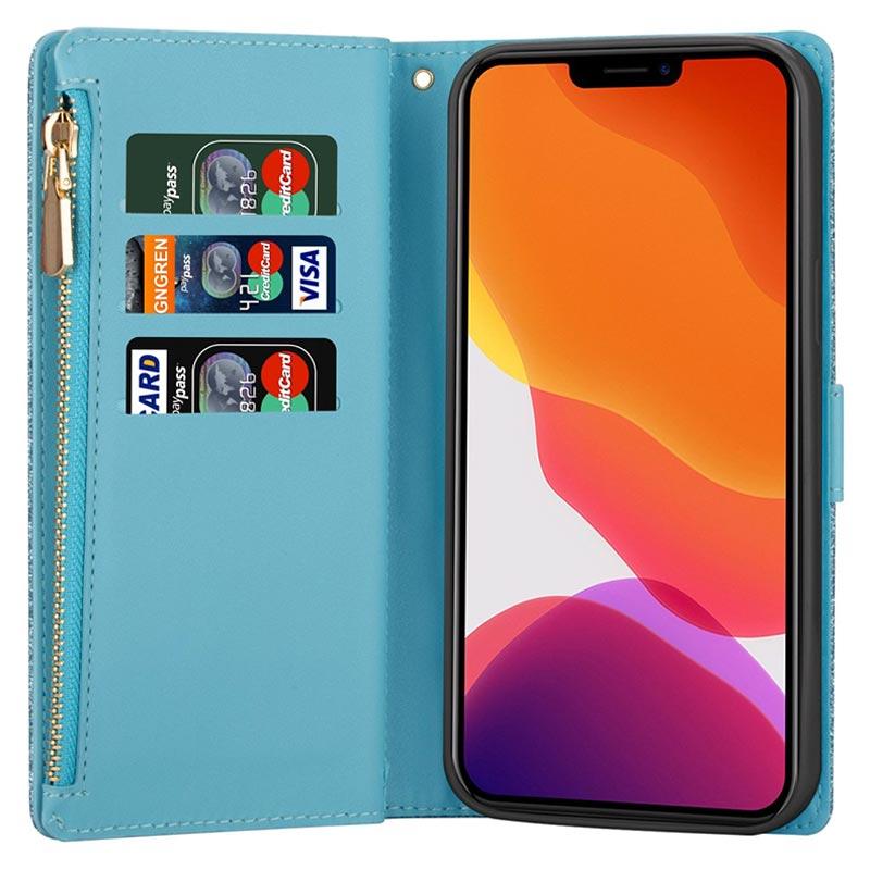 Dress your iPhone 14 Pro in this dreamy wallet case with lots of practical compartments. This wallet case is boosted with a shockproof TPU inner shell and ensures excellent all-around protection against bumps and dents. Upon multiple card slots and money compartments, this wallet case features one zipped pocket that lets you store some cash and trifles. Its shiny design makes your iPhone 14 Pro look stunning, while a detachable strap allows you to carry it safely with elegance.