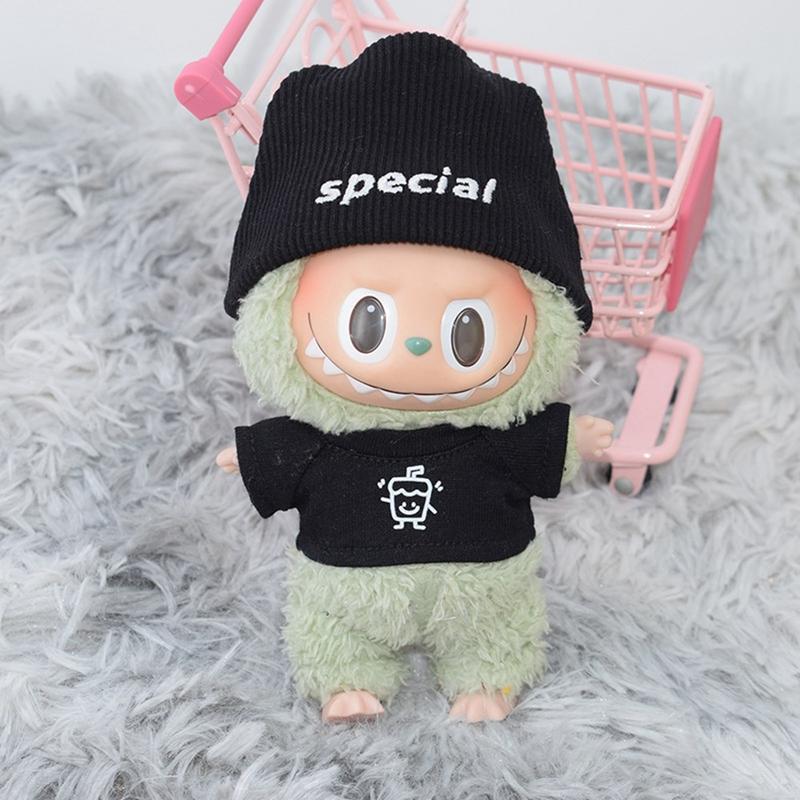 Street Style Clothes for Labubu Doll 17cm – Knit Hat & Graphic Tee Costume