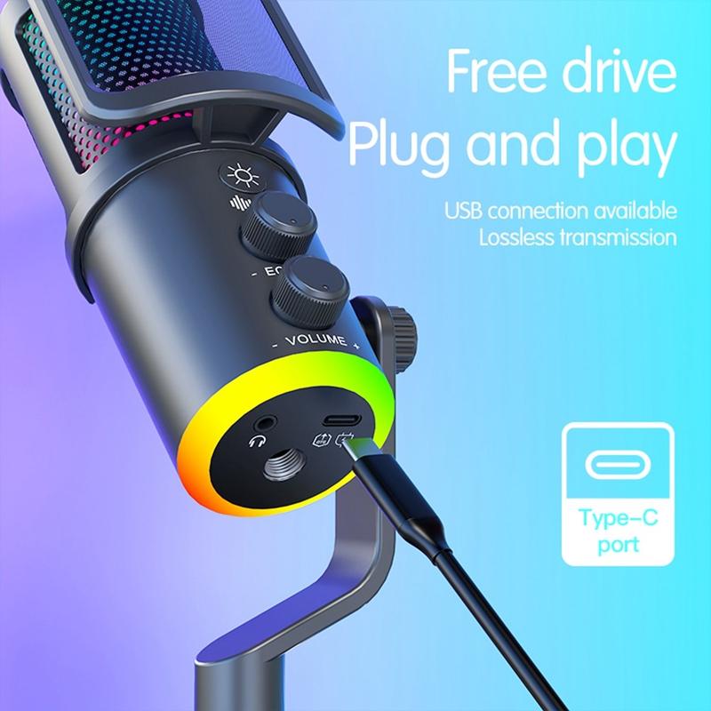 The SU9 RGB Gaming Microphone connects directly via USB or Type-C for instant setup. No drivers or complicated installation required - simply plug in and start recording. Compatible with computers, laptops, and smartphones, it’s perfect for gaming, streaming, and online meetings.