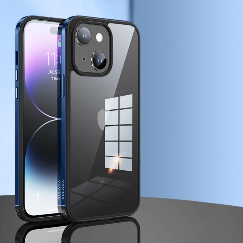 SULADA Minrui Series For iPhone 14 Plus Back Protector Cover, Electroplating Metal Frame High Transparency TPU+Tempered Glass Phone Shell