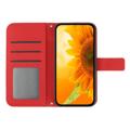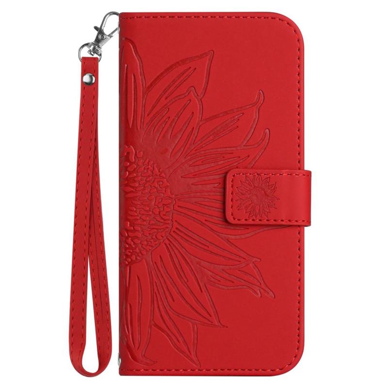 Bump Proof Flip Phone Case for iPhone 14 Pro Max, HT04 Imprinted Sunflower Stand PU Leather Skin-Touch Magnetic Wallet Cover with Strap