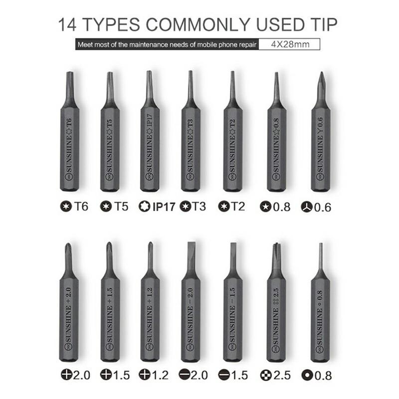 - Includes 14 magnetic S2 alloy steel bits for common repair needs