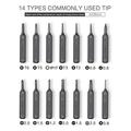 - Bit types include Phillips, Flathead, Torx, Y-type, and Hex