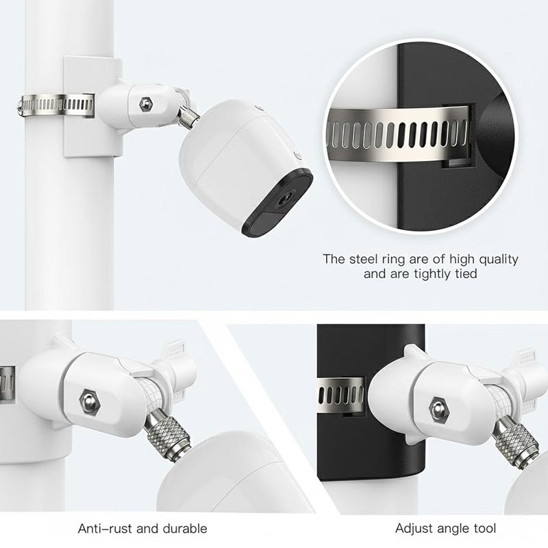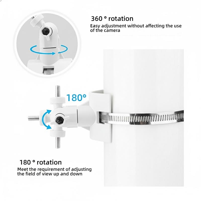 Equipped with a stainless steel clamp, the bracket offers strong gripping force and long-term stability. It securely holds the camera in place on poles or round structures, even in outdoor conditions.
