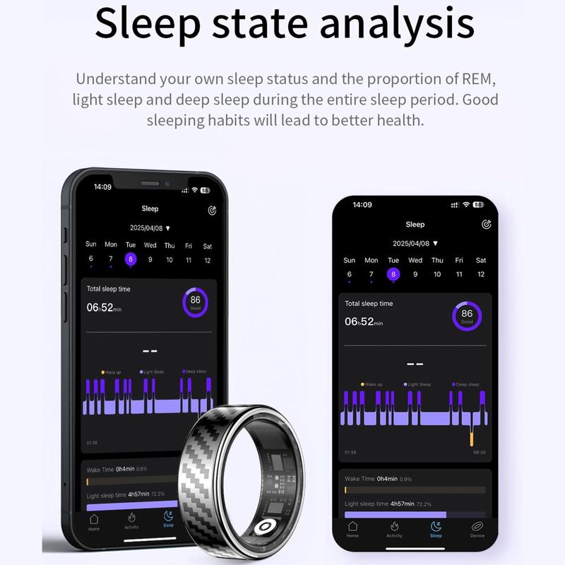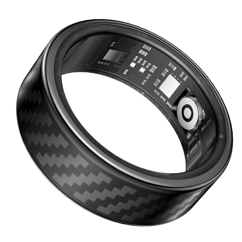 SY02 Carbon Fiber-Pattern Smart Ring - Sleep, Blood Oxygen & Heart-Rate Tracker with Wireless Charging Case