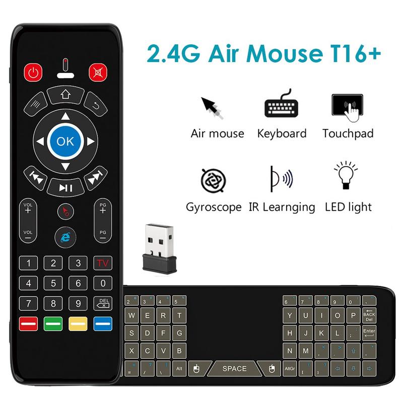 The T16+ wireless remote combines multiple control methods in one compact device: gyroscope air mouse, touchpad, full QWERTY keyboard, and 5-key IR learning. It s designed to replace several controllers and simplify navigation across smart devices.