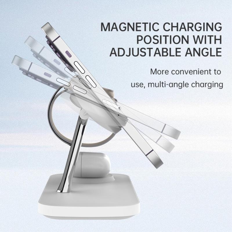 This charging stand is the ultimate multitasking accessory for tech enthusiasts. Its fast charging capabilities, adjustable angles, and compact design make it ideal for daily use. The strong magnetic hold ensures reliable charging, even with magnetic cases, while its 3-in-1 functionality saves space and time.