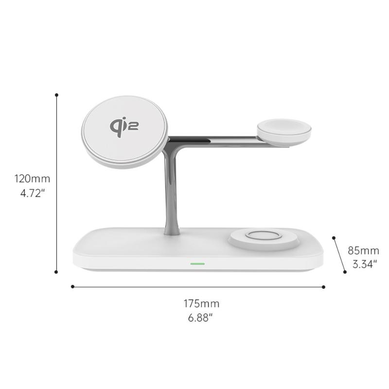 • T255 Qi2 15W Magnetic Wireless Charger - 3-in-1 Desktop Charging Stand for Watch, Earphones, and Phone