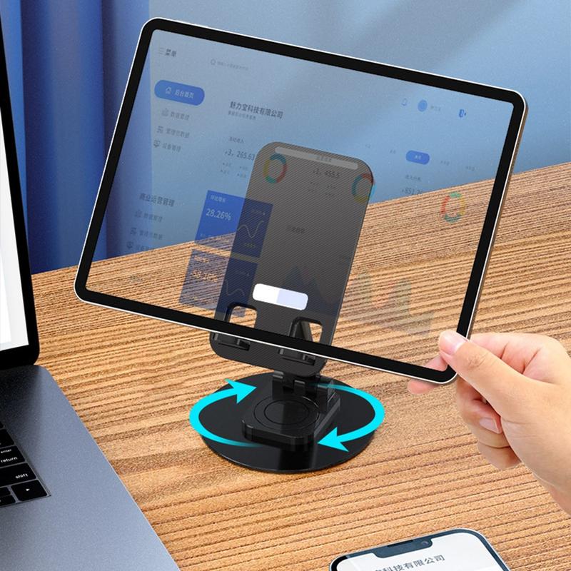 T9 Desktop Phone Stand Folding 360° Rotating Tablet Holder for Live Streaming, Online Teaching