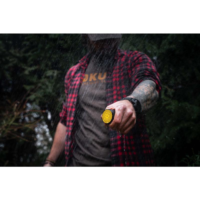 The StrikeBase AllTerrain measures just 48x40 mm and weighs a mere 182g, making it the perfect travel companion. The robust metal body, paired with a protective pouch and convenient loop, guarantees reliable performance on all your adventures or garden chills.