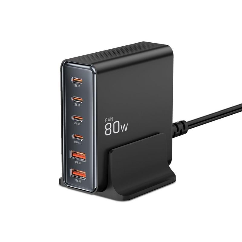 Tech-Protect DC80W GaN 6-Port Desktop Charger with 4x PD USB-C, 2x QC 3.0 USB-A - 80W