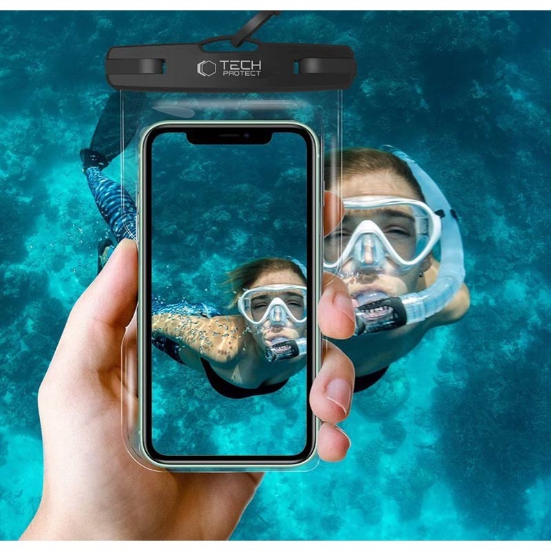 Uronite u letnje avanture dok Tech-Protect vodootporna futrola štiti vaš pametni telefon. Ova univerzalna futrola sa rejtingom otpornosti IPX8 garantuje kompletnu zaštitu od vode, prašine ili soli, dok vam zahvaljujući providnom dizajnu omogućuje da snimate nezaboravne podvodne fotografije tokom letnjeg odmora. Futrola je napravljena od fleksibinog mekog materijala koji ne utiče na udobnost pri upotrebi pametnog telefona.