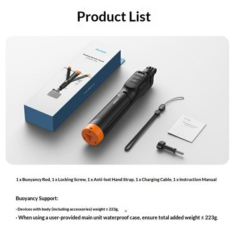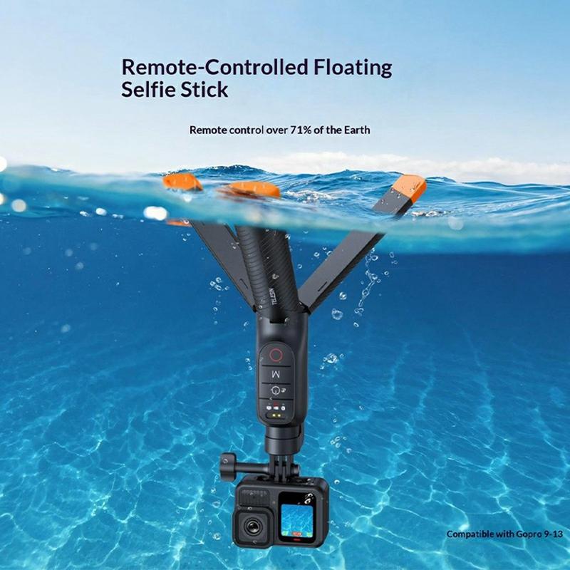 Capture more stable and flexible shots on land and in water with the Telesin S1-TSS-07 floating selfie stick. Designed for compatible GoPro action cameras, this multi-function accessory combines a floating stick, selfie stick, table tripod, and Bluetooth remote control in one compact solution. Whether you are filming at the beach, by the pool, on a boat, or during everyday outdoor adventures, it gives you more shooting options without carrying multiple accessories.
