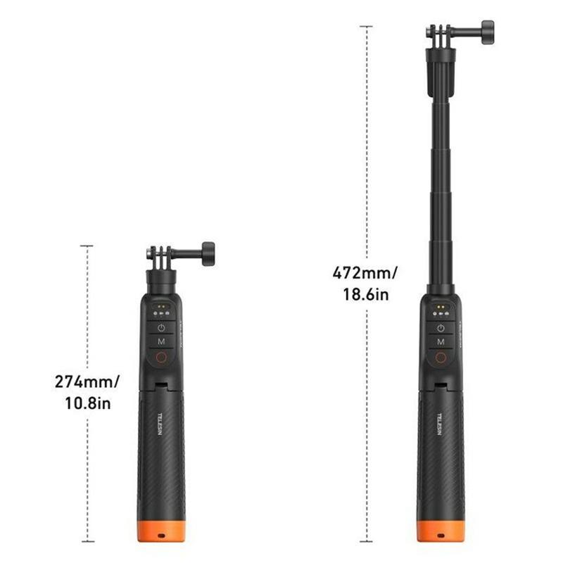 The built-in Bluetooth remote adds extra convenience by allowing wireless camera control, and the integrated tripod function makes it easier to set the stick down for more stable hands-free shooting. With a compact collapsible design, low power consumption, and up to 10 hours of use, the Telesin S1-TSS-07 is a practical choice for creators who want a versatile action camera grip for both wet and dry environments.