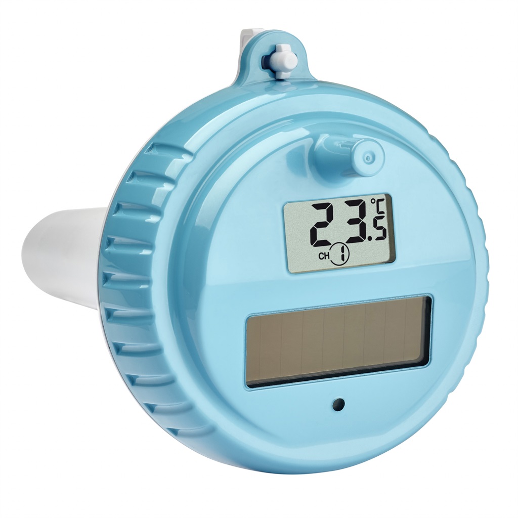 Monitor the water temperature of your pool or pond from the comfort of your home with the TFA Venice digital wireless thermometer. The floating pool sensor transmits information directly to your base station, and it's solar-powered with a 180mm measuring depth capacity. Water temperature with the highest and lowest values shows on the lower display area, and the upper display area informs you about indoor temperature and humidity. This wireless pool thermometer can also connect seven more temperature/humidity transmitters to measure the indoor or pool temperature.