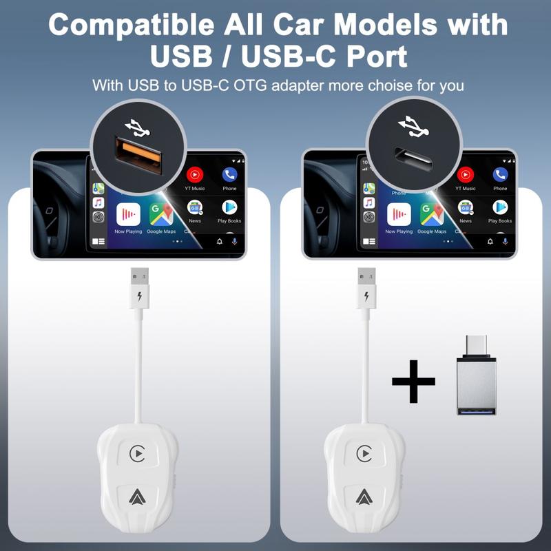 THT-020-9 Car Wireless Carplay Android Auto Dongle Wired to Wireless Adapter - White