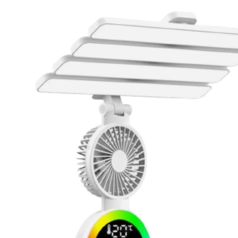 - All-in-One Design: Combines a lamp, clock, fan, and pen holder into one compact unit, saving space on your desk or nightstand.