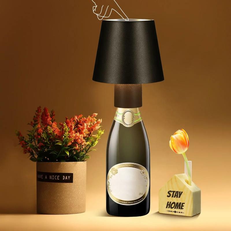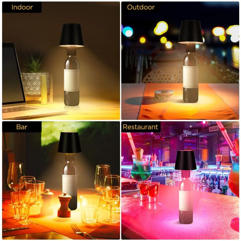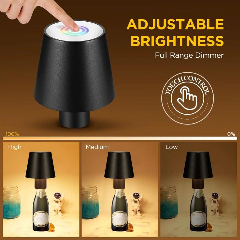 Touch Control Wine Bottle Light 3 Changing Color LED Lamp Portable Desk Light for Bar, Party - Black