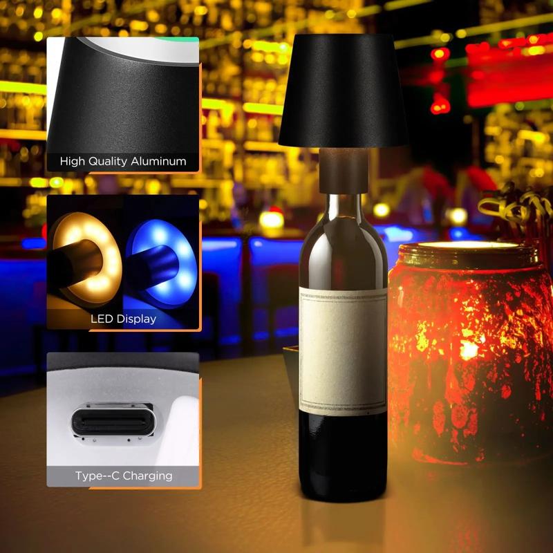 Touch Control Wine Bottle Light 3 Changing Color LED Lamp Portable Desk Light for Bar, Party - Black
