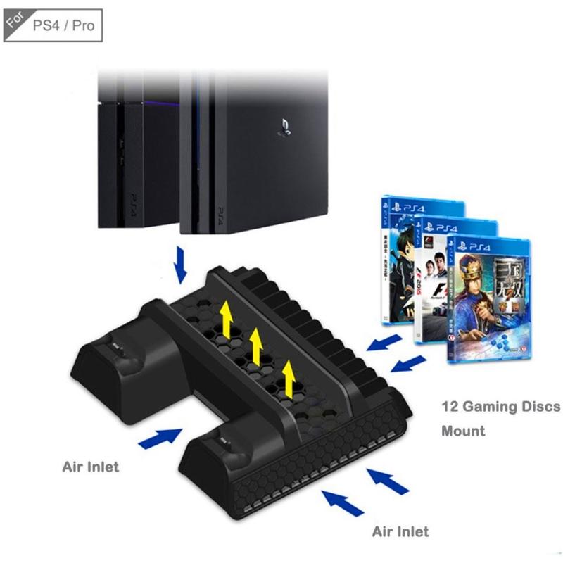 TP4-882 Vertical Stand with Cooling Fan Controller Cooler Dual Charging Station for Sony Playstation PS4/PS4 Slim/PS4 Pro