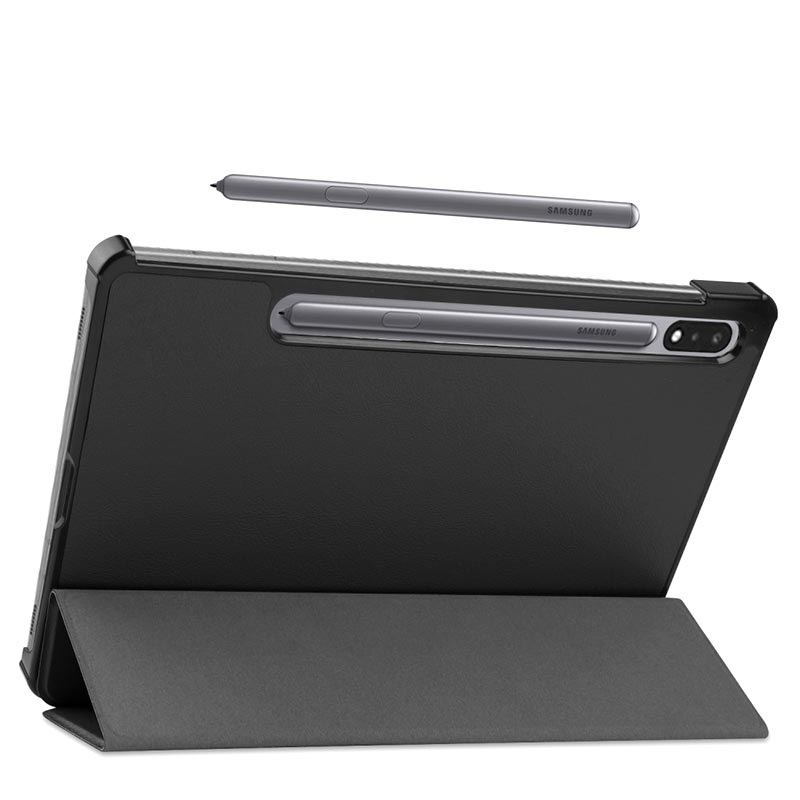 Tri-fold futrola za tablet sa funkcijom stalka za Samsung Galaxy Tab S7, Galaxy Tab S8 je veoma tanka i lagana. Ova futrola obezbeđuje kucanje i gledanje pod savršenim uglom, a ima i otvor koji omogućuje da S olovku prikačite za uređaj pomoću magneta.