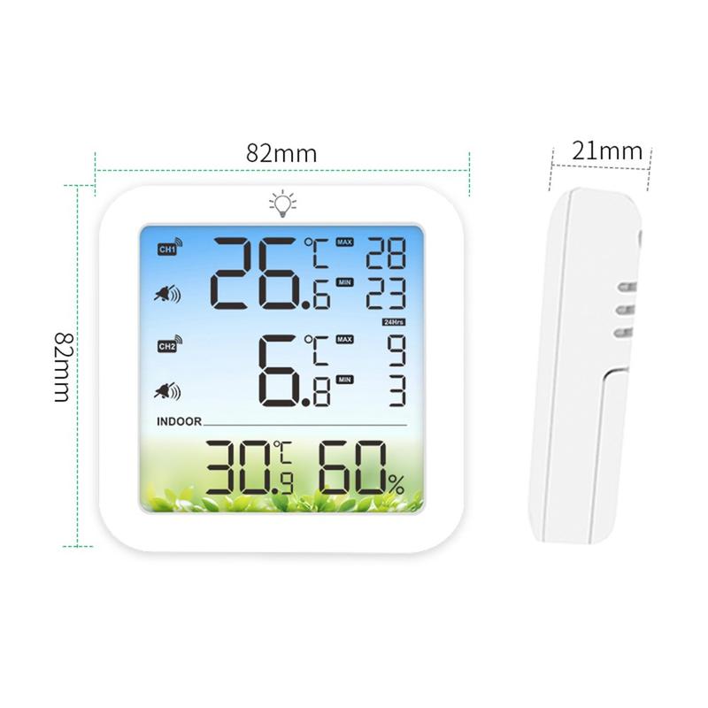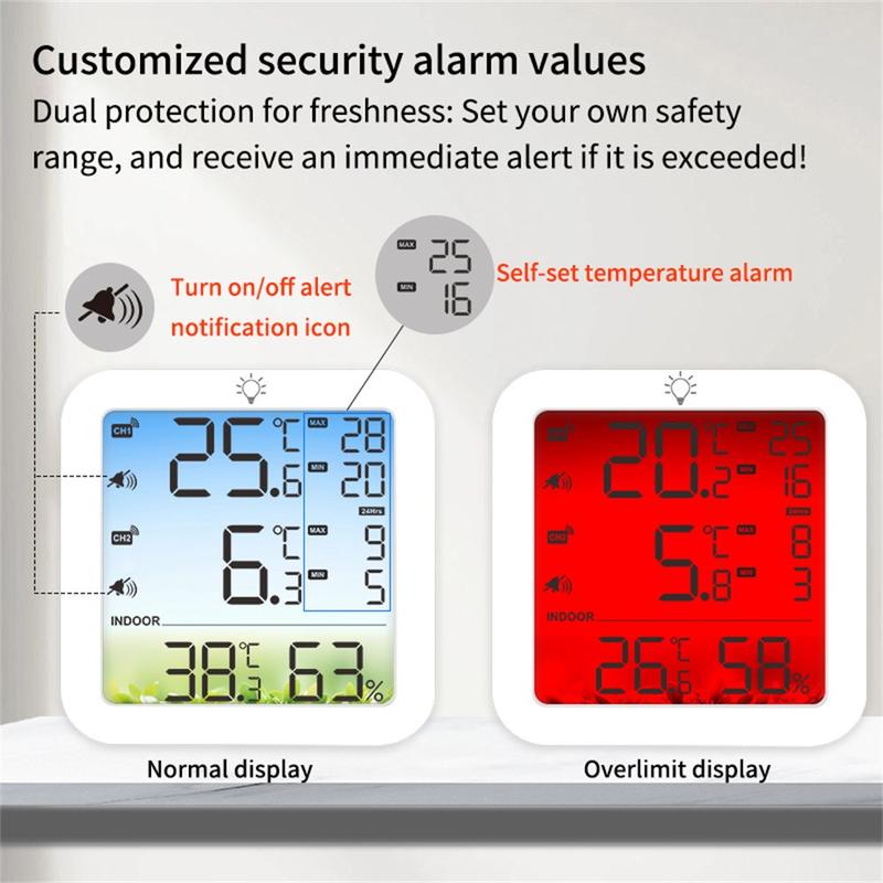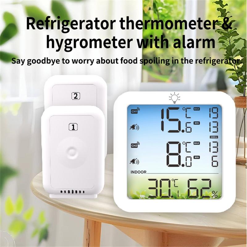 TS-8082 Dual Channel Wireless Thermometer Hygrometer - Fridge and Freezer Temperature Monitor with 2 Sensors and Alarm