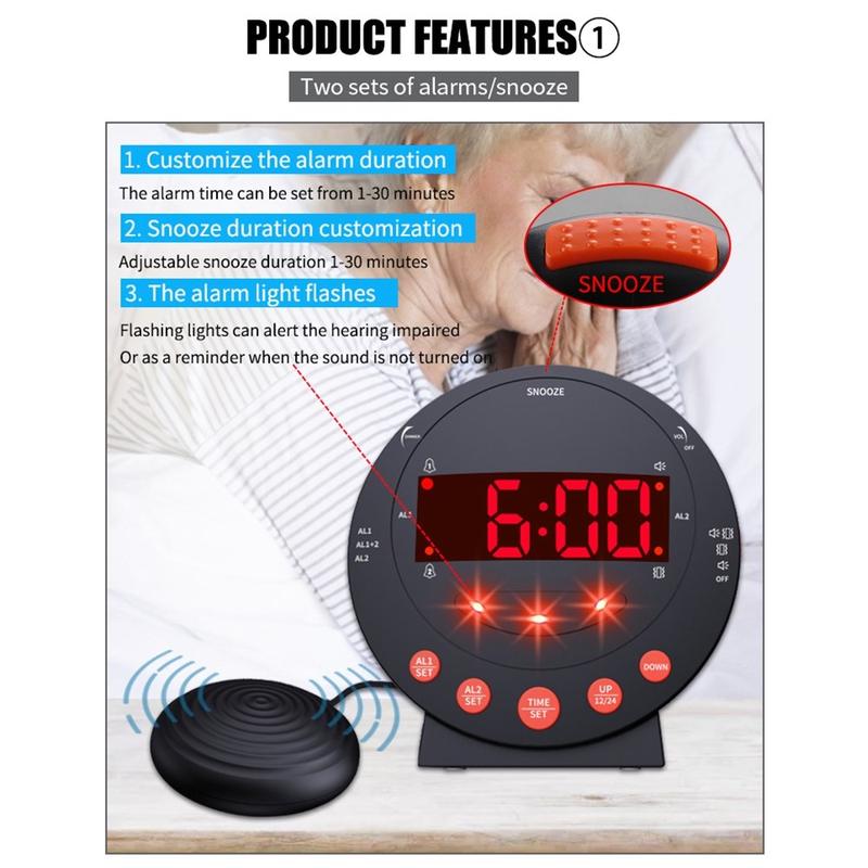 Wake up on time every morning with the TS-BC600 Loud Vibrating Alarm Clock. Designed to serve a wide range of users—including heavy sleepers, the deaf, and the hearing impaired—this clock offers both a robust audio alert and a strong vibration function. Featuring a user-friendly digital 12/24-hour display, you can easily set and view the time at a glance. Its compact design fits perfectly on any bedside table, ensuring a hassle-free experience for all.