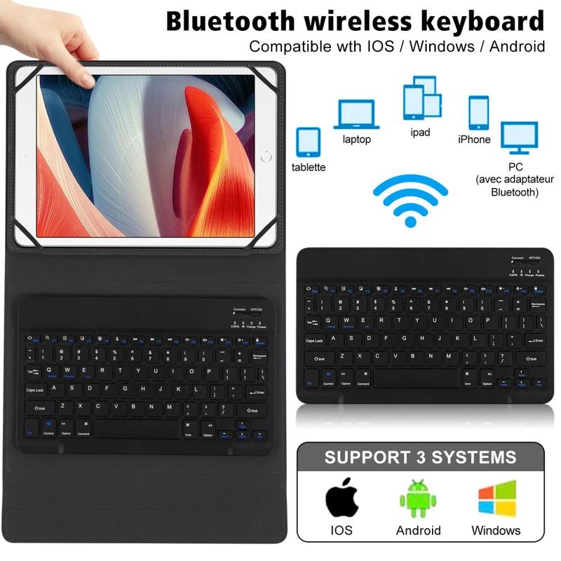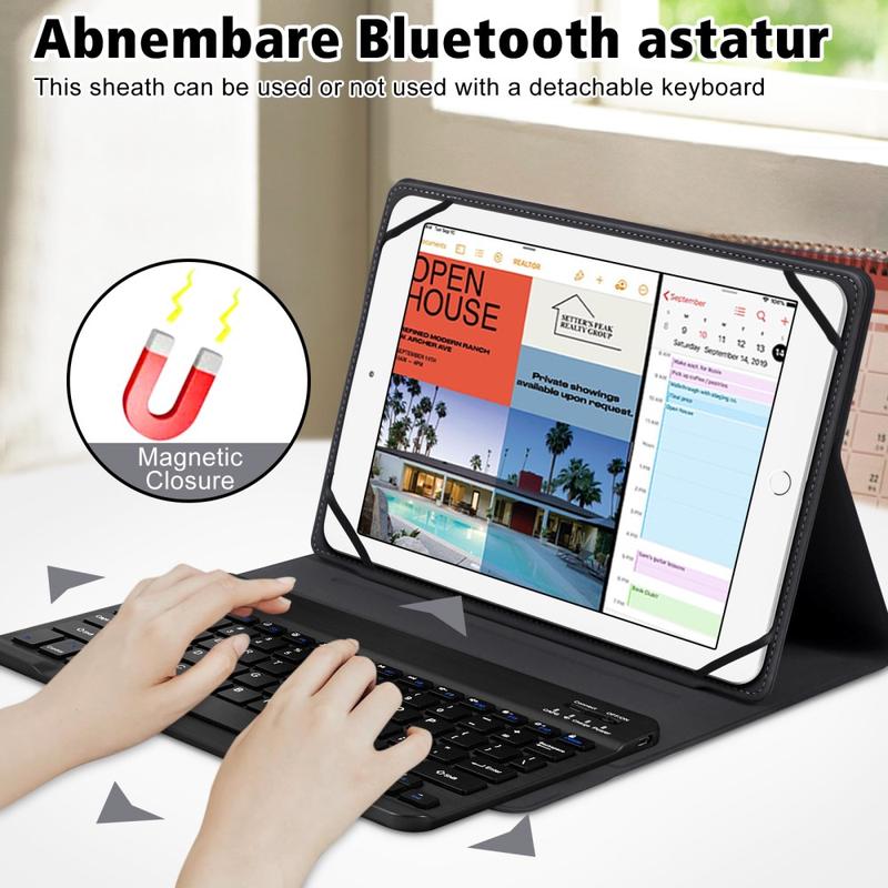 TY3316 Universal Tablet Case with Bluetooth Keyboard - 9-11", Polyurethane Stand Cover with Adjustable Viewing Angle, Elastic Straps, US Layout