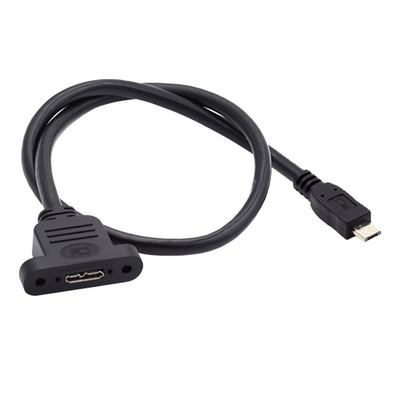 U3-012-MM 50cm Micro 3.0 Type-B Female to Micro USB 2.0 5Pin Male Extension Cable 480Mbps Screw Mount Type Cord