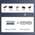 Adapts USB 3.0 Type-A Female Connections to USB Micro 3.0 Female and vice-versa. With this cable, you can directly connect Micro USB 3.0 socket, converted to USB 3.0 extension