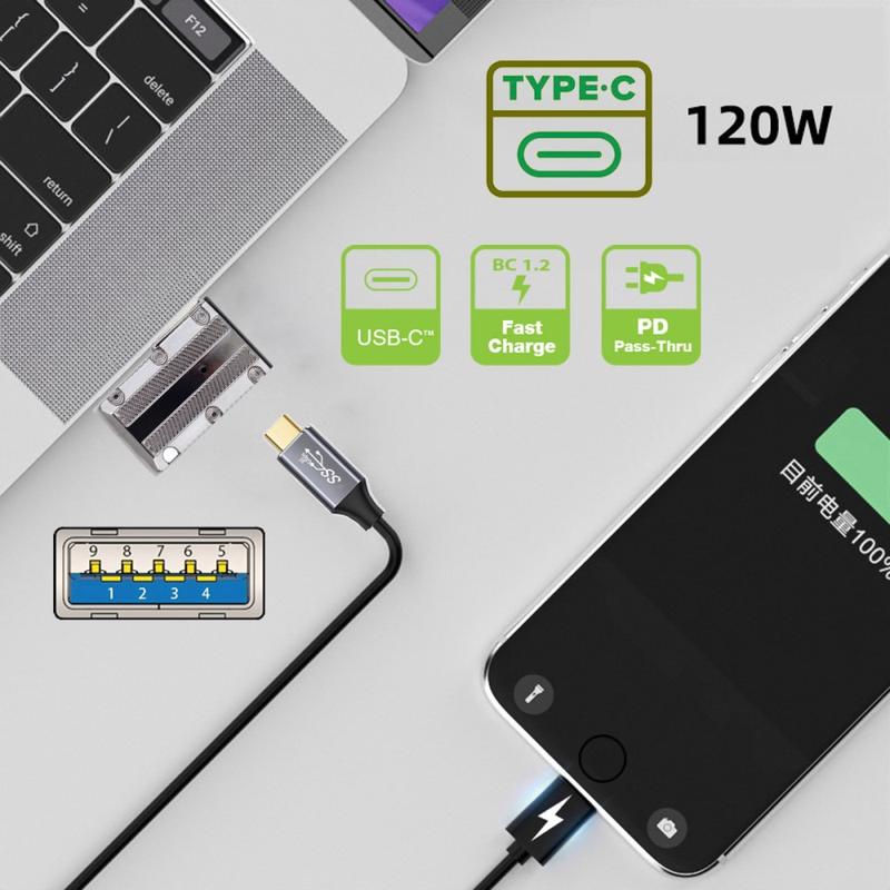 UC-029-TC002 USB 3.1 Type C Female to USB 3.0 Type-A Male 90 Degree Left Angled Flat Type 10Gbps Data 120W Power Adapter