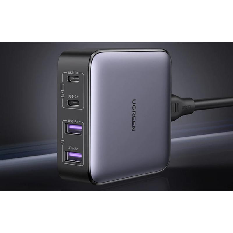 Ugreen Nexode 65W 4-Port Desktop Charger - Dual USB-C PD & Dual USB-A QC Fast-Charge Hub, Compact GaN Design