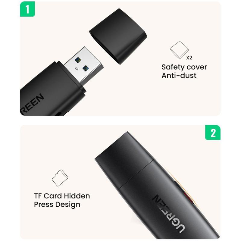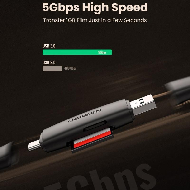 Ugreen USB-C and USB-A SD microSD Card Reader 5Gbps - 2-in-1 OTG Adapter with Dual Slots