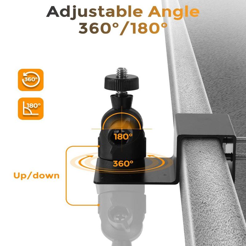 Universal Security Camera Railing and Gutter Mount - 360° Adjustable Aluminum Pan-Tilt Bracket with 1/4" Screw
