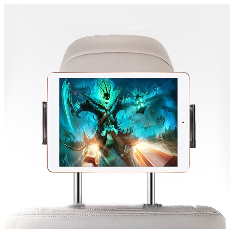 Duga putovanja više neće biti dosadna uz ovaj univerzalni držač za naslon za glavu u automobilu. Putnici na zadnjem sedištu će dobiti kompletan ugođaj zahvaljujući podesivom nosaču sa rotacijom od 360 stepeni koji garantuje komforno gledanje filmova, čitanje e-knjiga, igranje igrica itd. Ovaj praktični držač za automobil je izrađen od izdržljive legure aluminijuma sa silikonskim stabilizatorima koji će zaštititi Vaš uređaj od ogrebotina i vibracija tokom vožnje. Podesivi držač je kompatibilan sa uređajima širine od 12cm do 19cm.