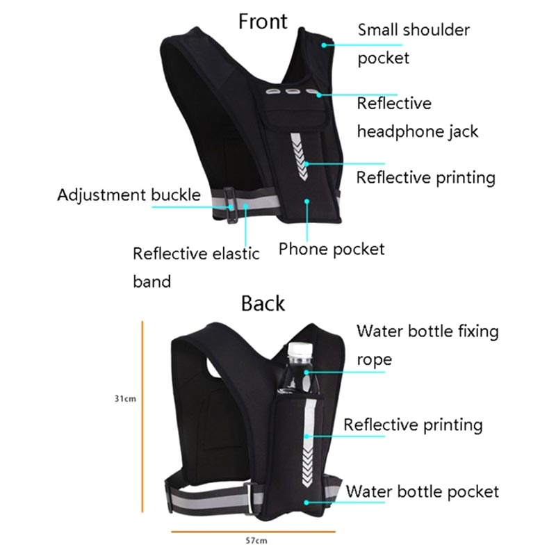 - Ima podesivu traku za udobnije pristajanje, takođe reflektirajuće elemente koji Vas čine lako vidljivim u uslovima slabog osvetljenja