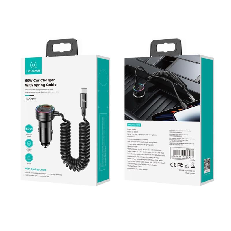 Name: C33 60W Car Charger With Spring Cable
