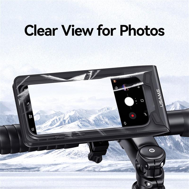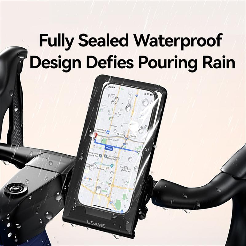 Keep your phone protected and easy to use while cycling with the USAMS ZJ083 waterproof bike phone holder. The fully sealed pouch helps shield your device from rain and road splashes, while the high-transparency window lets you use the touchscreen for navigation, music, or calls without taking the phone out. With 360-degree rotation and shock protection, it is built for commuting, training rides, and rougher trails.