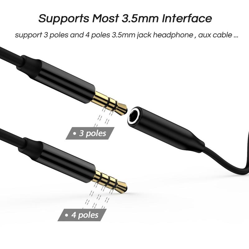 - Compatible with 3-pole and 4-pole 3.5 mm plugs (headphones, headsets, AUX cables)