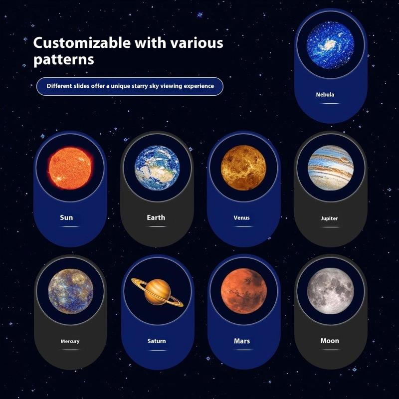 - 10 Interchangeable Slides – Includes multiple planetary designs for personalized projection themes.