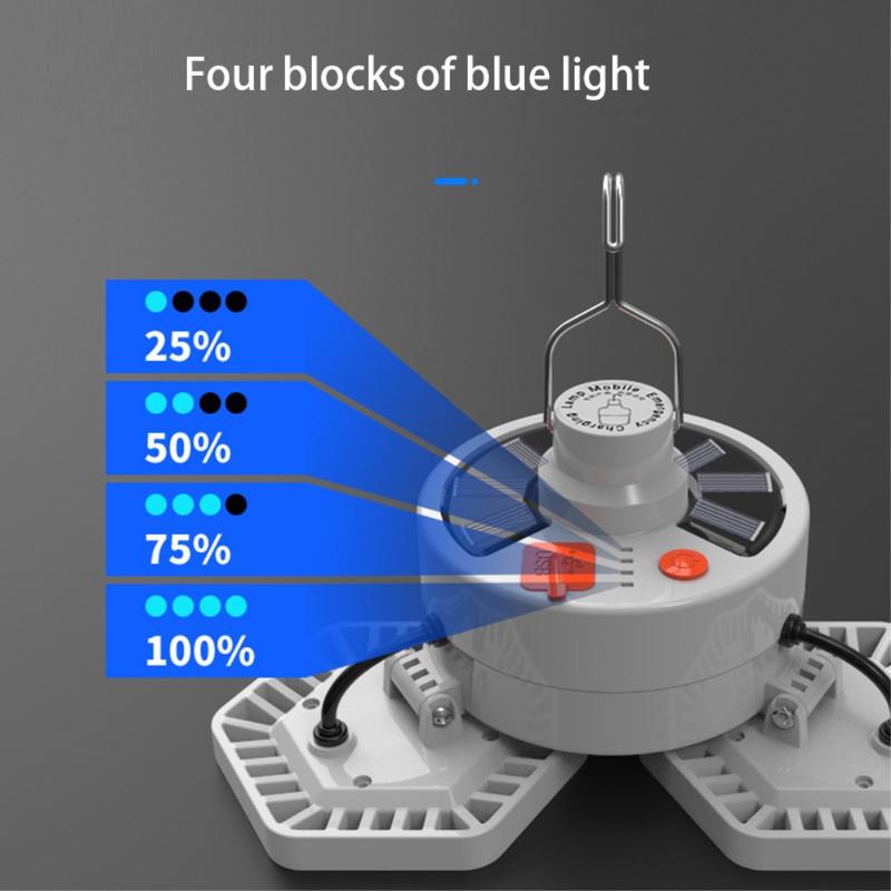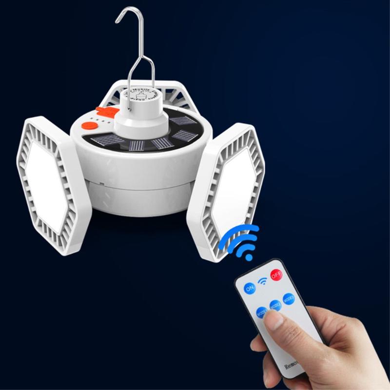 V126 Solar Camping Lantern - 3-Leaf Folding LED Light & Power Bank, USB / Solar Recharge, Remote Control (126 LEDs)