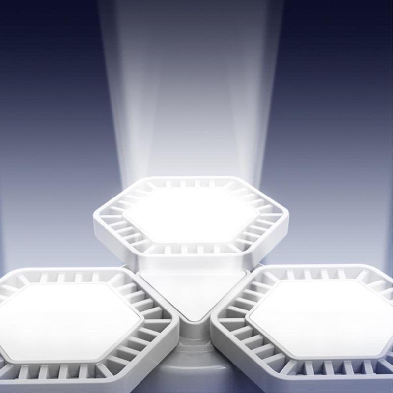 - Wide-angle triple panels - 3 folding “leaves” lined with 126 high-output LEDs bathe large areas in uniform light.