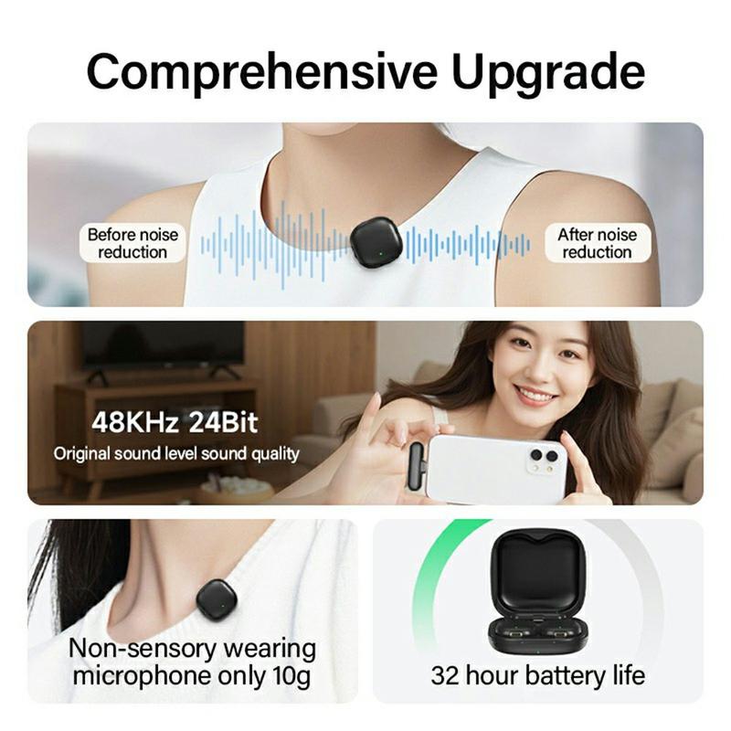 No apps, drivers, or Bluetooth pairing needed. Just plug the USB-C receiver into your device and enjoy auto-pairing in seconds. Compatible with iPhone 15/16/17, Android smartphones, tablets, and laptops – making it the ideal microphone for content creators across multiple platforms.