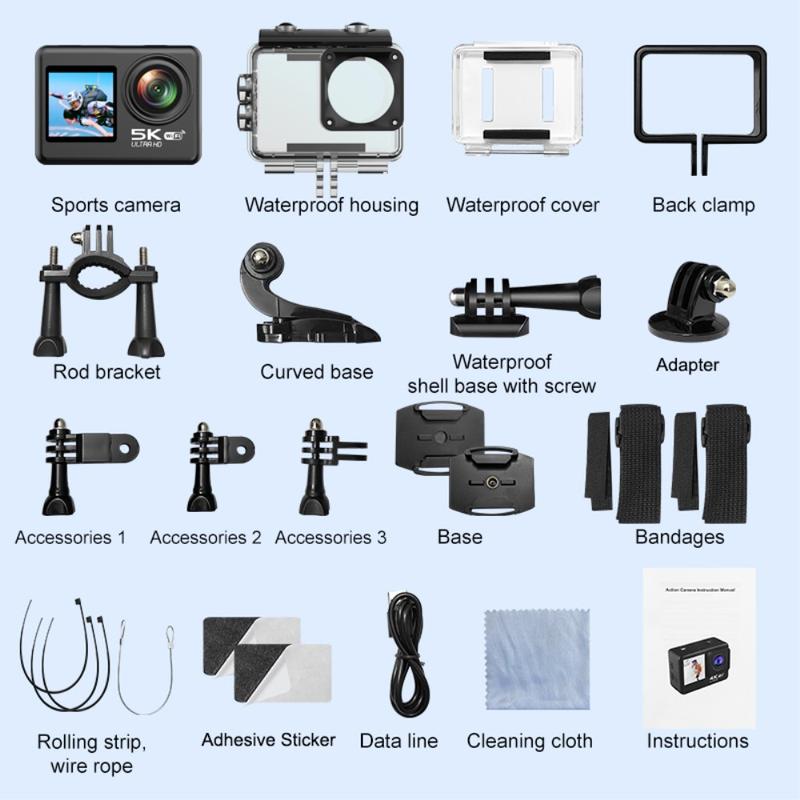 V5 5K WiFi EIS Anti-shake Action Camera 30m Waterproof Dual Screen Sports Camera