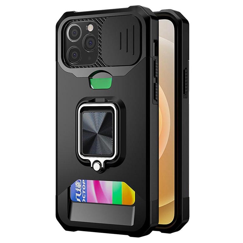 Multifunkcionalna 4-u-1 Hybrid Maska za iPhone 12, iPhone 12 Pro sa Pregradom za Karticu, Magnetnim Prstenom, Postoljem i Zaštitom za Kameru