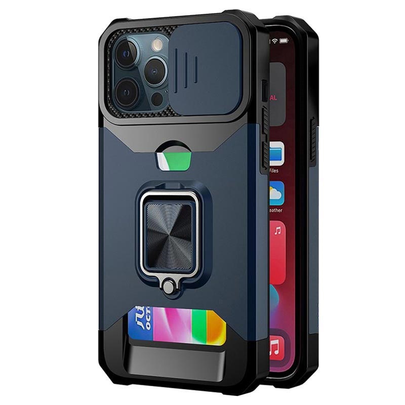 Multifunkcionalna 4-u-1 Hybrid Maska za iPhone 12 Pro Max sa Pregradom za Karticu, Magnetnim Prstenom, Postoljem i Zaštitom za Kameru