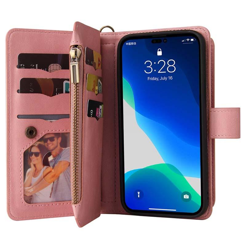 Everything you need for carrying your essentials is in this multipurpose wallet case! You can store your iPhone 14 Pro and other valuables in one place and leave your wallet at home. This premium quality wallet case with perfectly handled details makes your iPhone 14 Pro look luxurious while shielding it from various everyday impacts. Multi-card slot design and zipper pocket are convenient for storing multiple cards, documents, and some cash. In addition, there is a practical strap for easier carrying your iPhone 14 Pro.