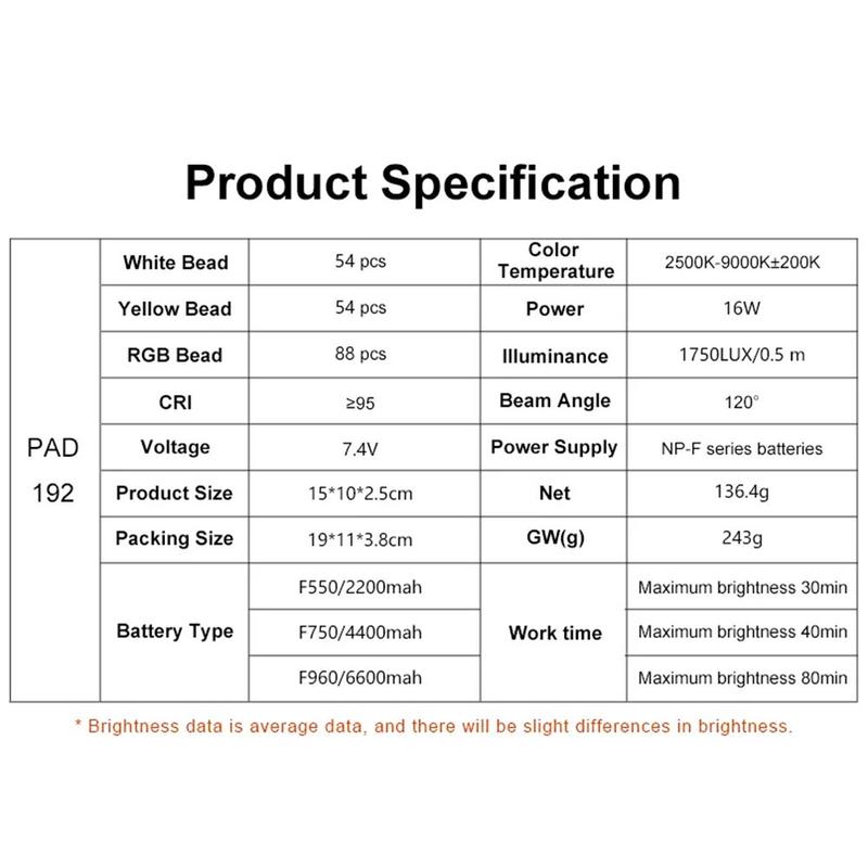 VLOGLITE PAD192RGB LED Camera Fill Light RGB Full Color Portable Photography Lighting for DSLR Camera Gopro