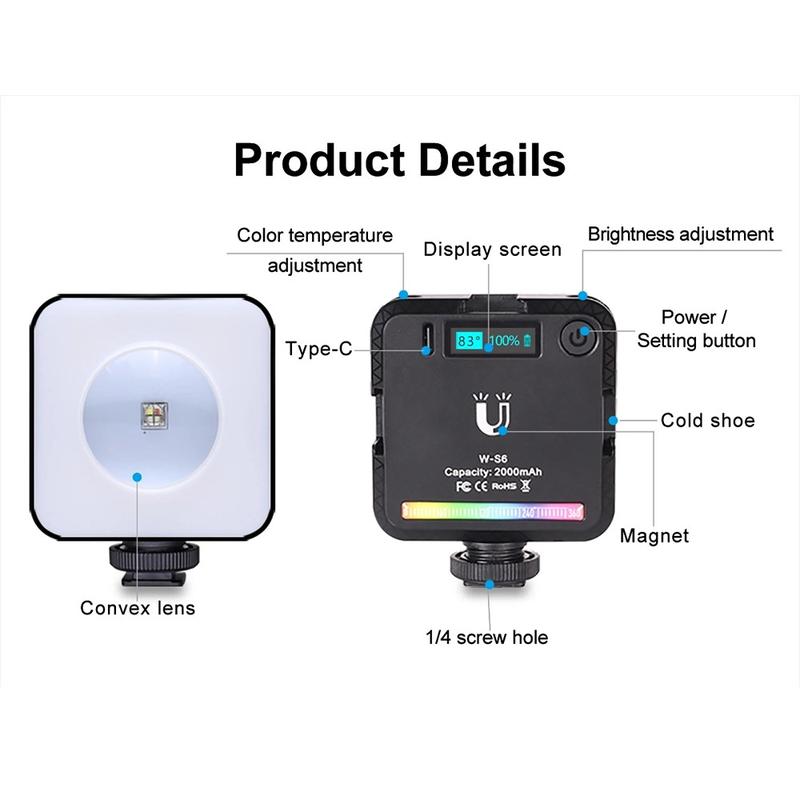 Featuring 45 LEDs, 60° beam angle, a maximum illuminance of 800 lux at 0.3m, and a high CRI of 95+, this 6W WS-6RGB LED video light helps to obtain more accurate color reproduction in your images